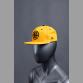 This yellow New Era baseball hat was worn by Yesod “Yee” Williams and features an embroidered logo in black combining the letter “I”, an hourglass, and a floral element within the circle.